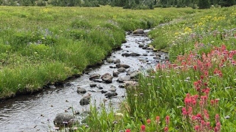The more direct route back to the trail is following the path down the creek to Golden Lake and from there, rejoining the Green Lakes Trail. Hikers can either return to Green Lakes over the pass or travel northeast to Park Meadow and from there to the Park Meadow trail head near Three Creeks. This second option will involve hiking through over 4.5 miles of burned forest, however. Both methods can be done in a long day, those coming from Green Lakes hiking over 18 miles and those coming from Park Meadow close to 17 miles. Others could pack in camping supplies and better explore and enjoy the day in the area.
