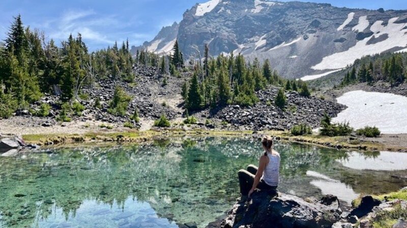 The heavy snow experienced during the winter of 2024-2025 delayed the opening of the most popular Central Oregon hikes until later in the summer. However, the heavy snow also provided extra moisture in the soil which has resulted in a fabulous wildflower season. Among the best areas for wildflowers in the Central Oregon Cascades is Canyon Meadow, part of the hike to the base of Three Fingered Jack. Canyon Meadow hike is a moderate loop that takes hikers from Jack Lake to the meadow and then returns through the burned forest resulting from 2003's B & B complex fire. However, for those wanting a more challenging hike, taking the unmaintained spur from Canyon Meadow to Three Fingered Jack provides for spectacular views and a tough scramble up the moraine of Jack Glacier (unofficial name) which is mostly gone. The aqua blue of the glacial lake was especially stunning the beginning of August. Hikers can climb the moraine until they reach the ridge connecting Three Fingered Jack with the unnamed colorful hoodoo next to it. The flat top of the ridge can be a great location for lunch or a snack before taking the slow trek down the moraine back to the more established trail. There is a side trail that can be taken to the upper meadows following the stream which exits the moraine. The upper meadow was stunning with blooming wildflowers the beginning of August. Once the lower meadow is reached, the loop back to Jack Lake can be taken, although much of this is in burned forest. Another option is to return the way hikers arrived at Canyon Meadow rather than continuing the loop through the burned forest. This will add elevation and distance, however.