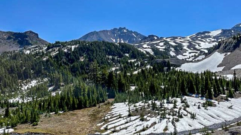 We have hiked the Obsidian Trail several time over the past few years, but the hike done July 2, 2023 was extra special. Late snow has delayed access to the high Cascades and we found patches of snow on our hike. However, these were easily traversed with trekking poles. The 11.5 mile loop connects with the Pacific Crest Trail for several miles and at the peak of the elevation, hikers walk by and on glaciated obsidian which sparkles in the sunlight. Photos do not properly reflect the actual experience of the glittering rock. The hike also passes through high alpine meadows, which had wildflowers blooming, and several shallow creeks to cross. Obsidian Falls can be a great rest stop, but our favorite lunch spot is in the sun taking in the amazing views of Middle and North Sister as well as Little Brother. All in all, the 11.5 miles gained 2165 feet in elevation and took 5.5 hours of actual walking time. Bring bug spray this time of year as the mosquitos are out.
