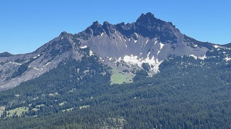 After passing small Twin Lakes and the junction with the Lava Lakes Trail, the hike passes through more woods and open areas until the final push up Maxwell Butte starts. The trail steepens and switchbacks and as hikers gain elevation, the views towards North and Middle Sister, The Husband, the Wife and then Broken Top become visible. The topography of Hogg Rock, Hoodoo and Hayrick Butte become very evident as hikers climb. However, it isn't until the peak of Maxwell Butte is reached before the stunning views of Three Fingered Jack become seen. Three Fingered Jack's western flank fills the view from the top of Maxwell Butte. Turning slightly west, the views toward Mt. Jefferson, Mt. Hood and the multitude of small and larger lakes in this section of the Willamette National Forest and Jefferson Wilderness were obvious, as were the results of many fires experienced in Central Oregon over the past few years. All in all, the hike to the top of Maxwell Butte is slightly over 10 miles with 2500 feet of elevation gain.