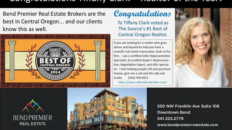 The Source Weekly's Best of Central Oregon for 2024 has named Bend Premier Real Estate's Tiffany Clark as the number one Realtor. Congratulations Tiffany!